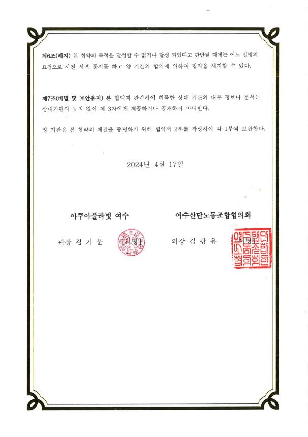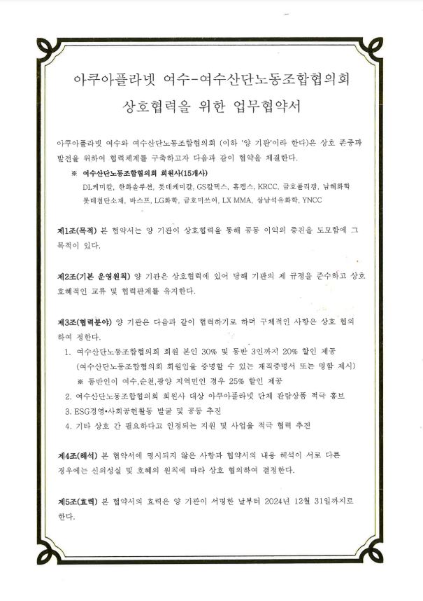 [여노협] 한화아쿠아플라넷 여수점 업무협약