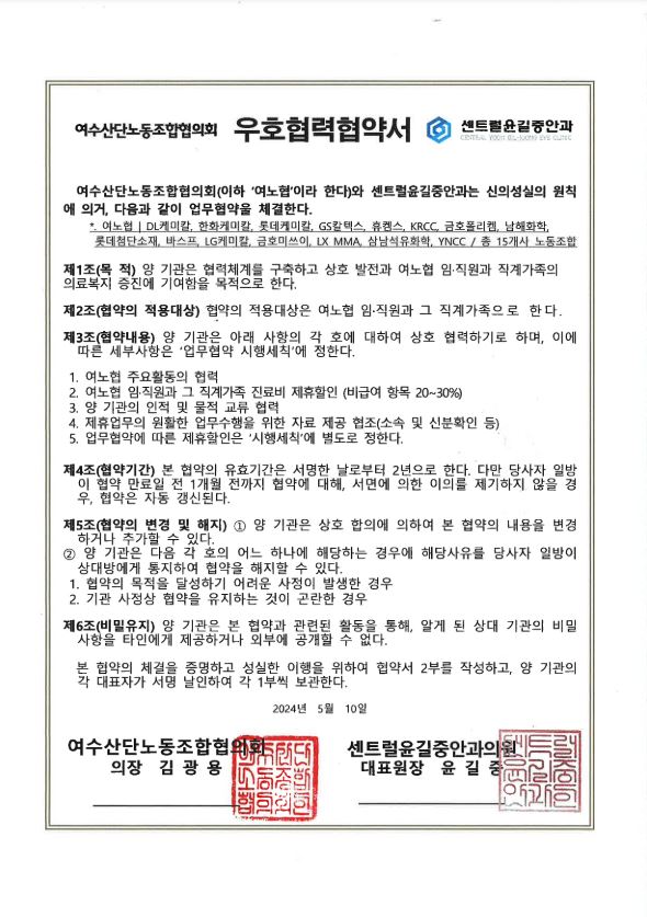 [여노협] 센트럴 윤길중안과 업무협약