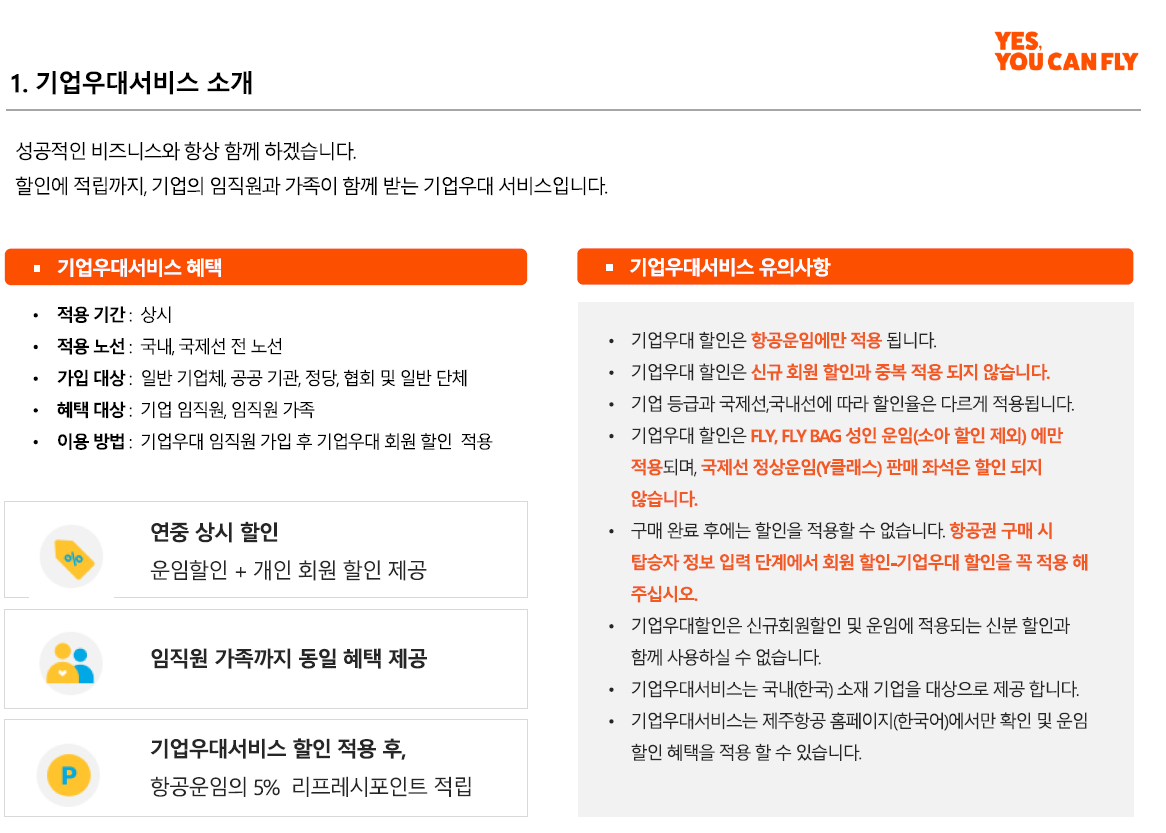 제주항공 기업우대서비스