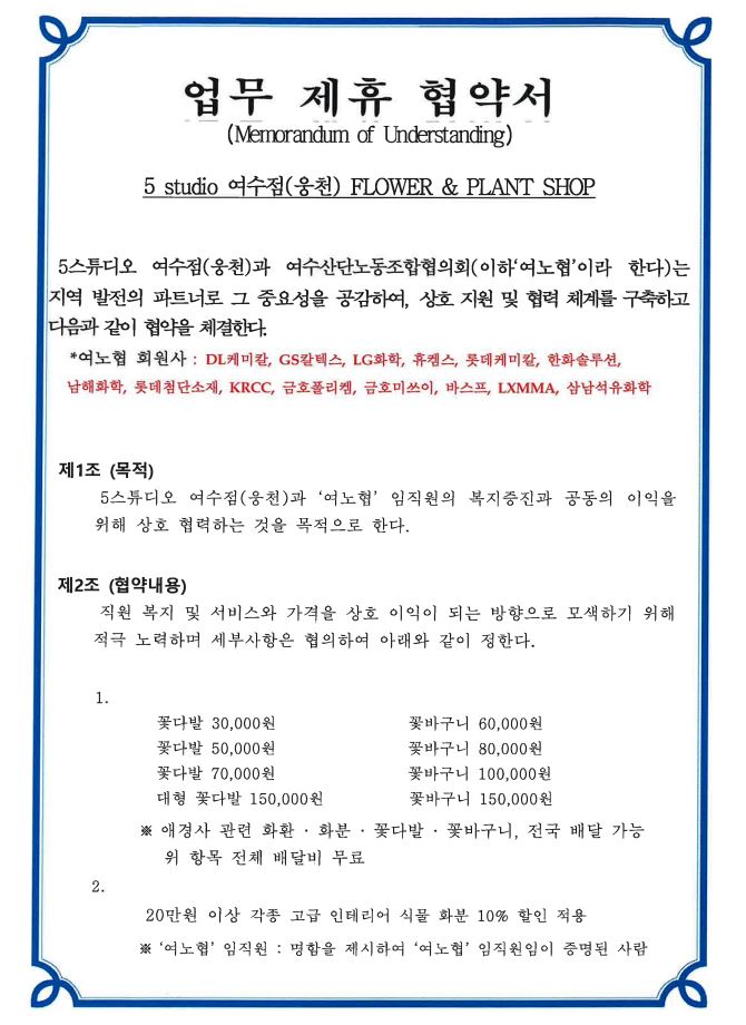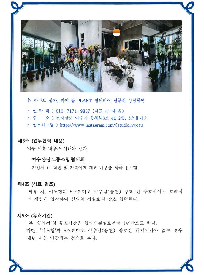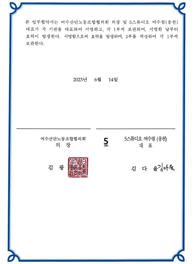 [여노협] 5스튜디오 여수점(웅천) 업무 협약
