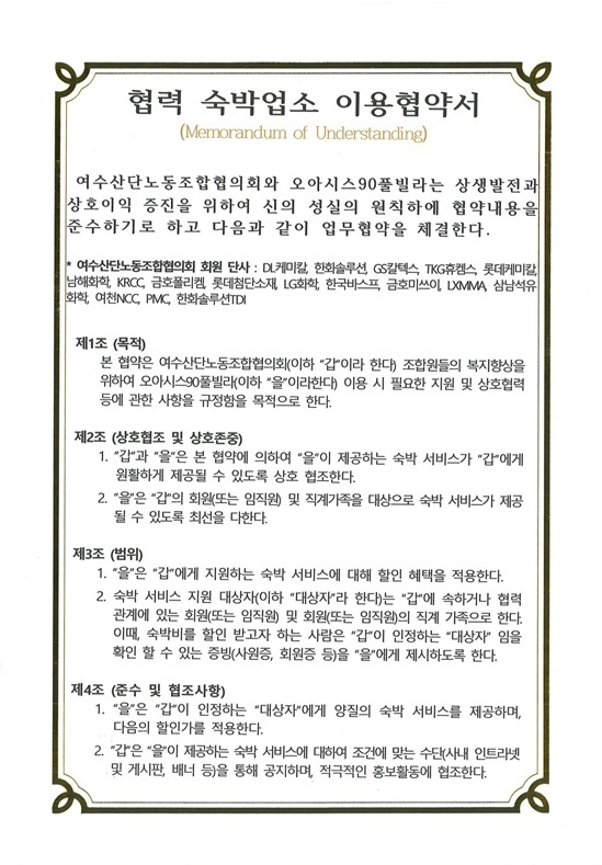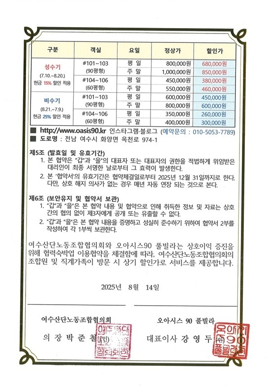 2026년☺ 여수 오아시스90 풀발라 업무협약